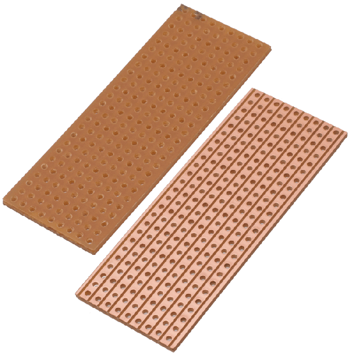 Breadboard Perfboard is a Perfboard in the shape of a breadboard, the benefit of this is that you don’t need to think about how to re-arrange your board to fit a Perfboard or Stripboard, you only need to copy the connections you made on your breadboard. The downside is that these tend to be more expensive and less compact than other Perfboards.